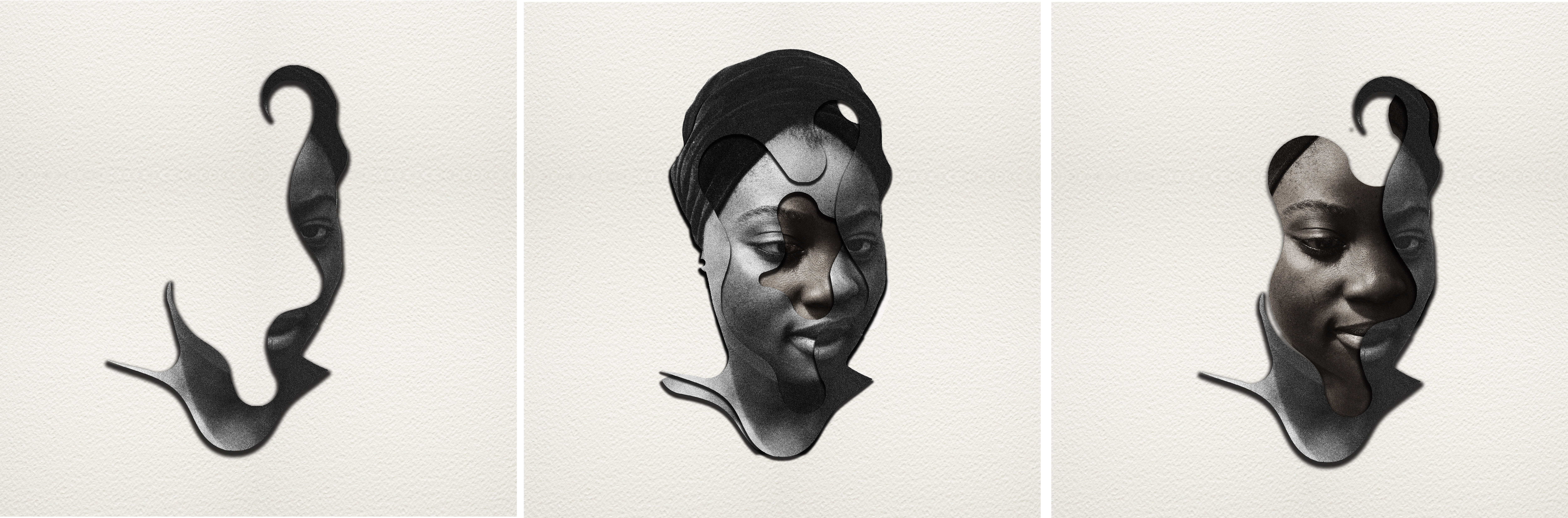 Mobolaji Ogunrosoye (b. 1991, Nigeria) uses the distortion of photography and collage to explore ideas around perception. Her practice is centered around the concept of ideation and the myriad ways in which images of the female body can be manipulated and reshaped. In the Portraits series, Ogunrosoye creates multi-layer collages that involve a transformative process of burning and cutting. This technique adds depth and dimension, revealing underlying layers of images. The series addresses selfhood, body image, and the impact of societal influences on personal identity as it is related to Nigerian women. Ogunrosoye received a Masters of Architecture from University of Lincoln and a Masters Degree in Architectural Engineering from University of Bath. She lives and works in Lagos.