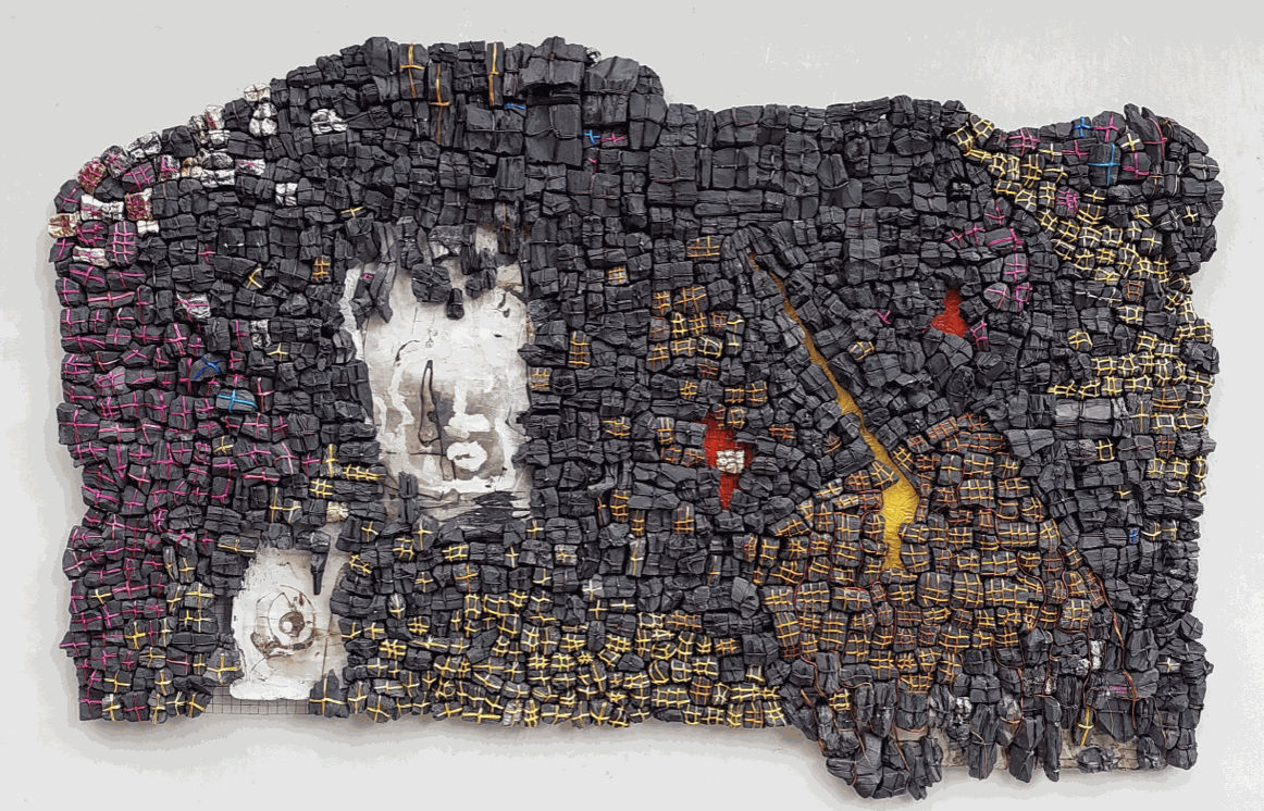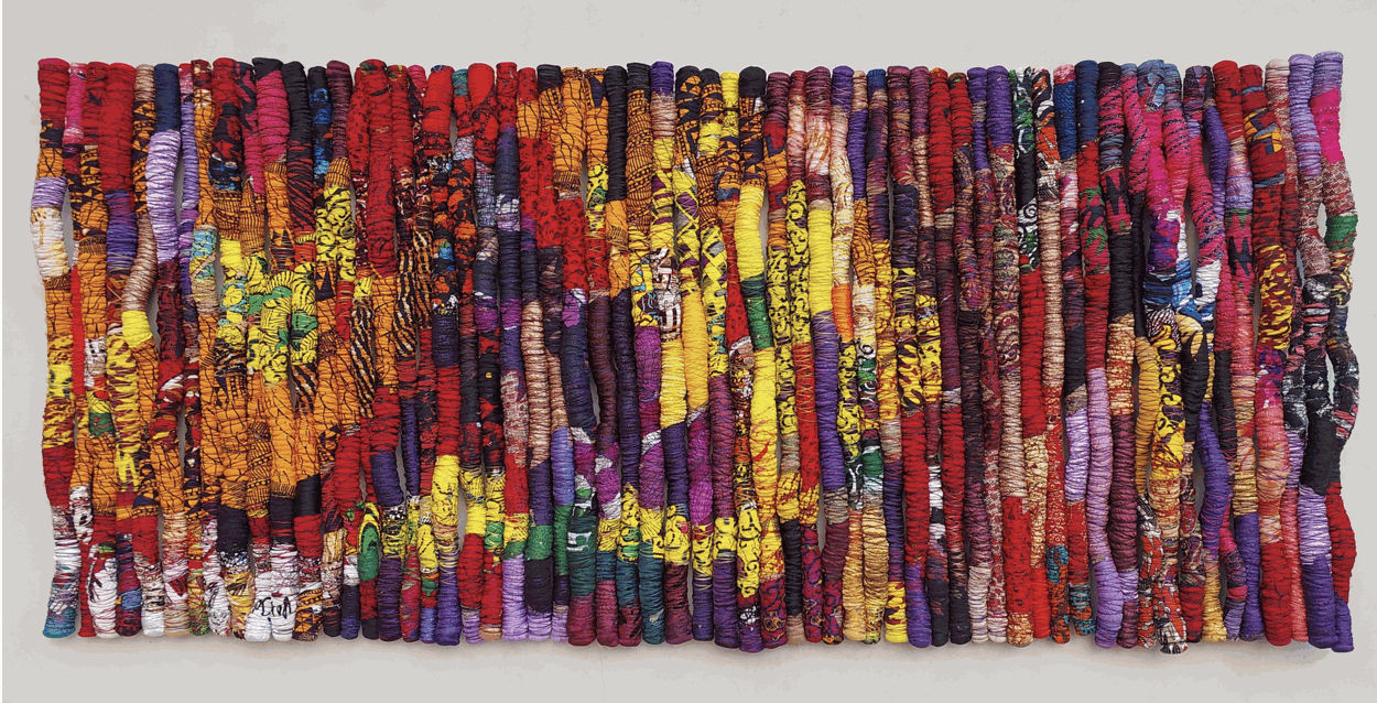 Eva Obodo is a professor of Fine and Applied Arts at the University of Nigeria, Nsukka, specialising in sculpture. Over the past two decades, Obodo's artistic practice has evolved significantly. Initially focused on exploring dry wood through techniques of tying, binding, and polishing, his recent work incorporates wood in its charcoal state—a transformative phase following burning that is often deemed aesthetically depleted. Similarly, his approach to fibre art has shifted from creating soft sculptures using jute bags to crafting cylindrical forms and bold, thread-like wave lines, highlighting the artist's experimental process with materials.